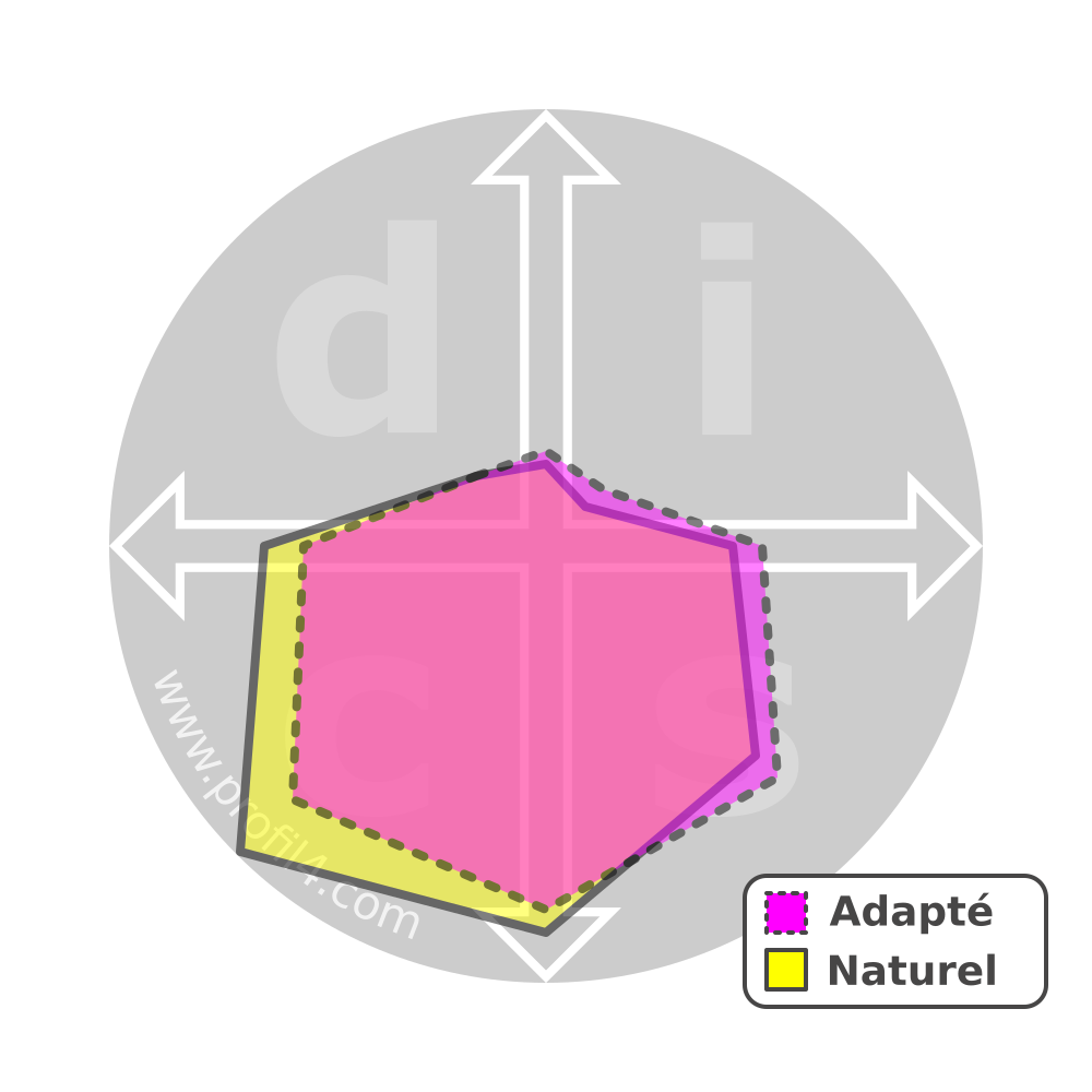 En plus de la répartition du profil de Sophie sur les composantes DISCp4, le modèle définit son profil "adapté" et son profil "naturel".